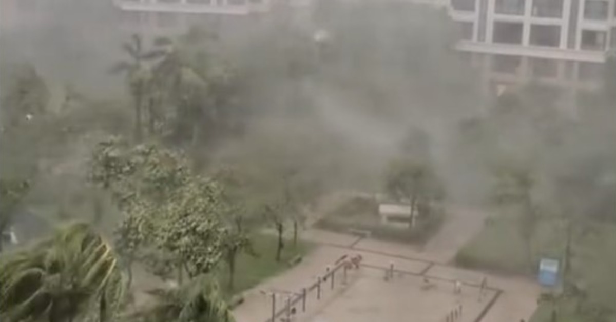 劍魚颱風24號掃過中國海南,在渡假勝地三亞測到強陣風有12到14級,還被當地人稱為是40年來最強颱風。(圖/翻攝自 萝卜吃啦u 微博)